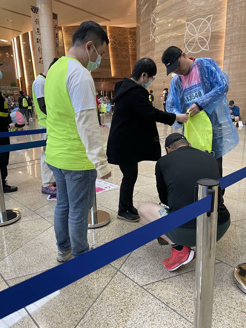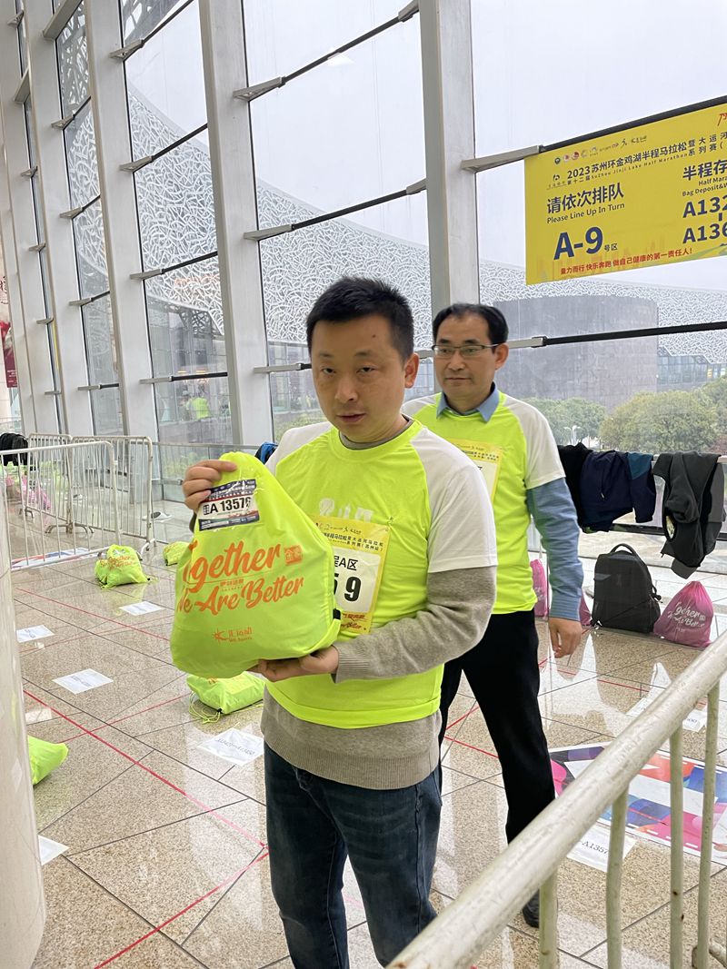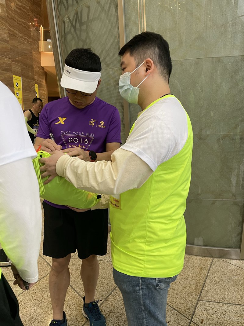 蘇州建筑工程集團有限公司志愿者服務隊此次抽調了15名志愿者承擔了馬拉松比賽A9區、A10區存取包志愿服務工作。