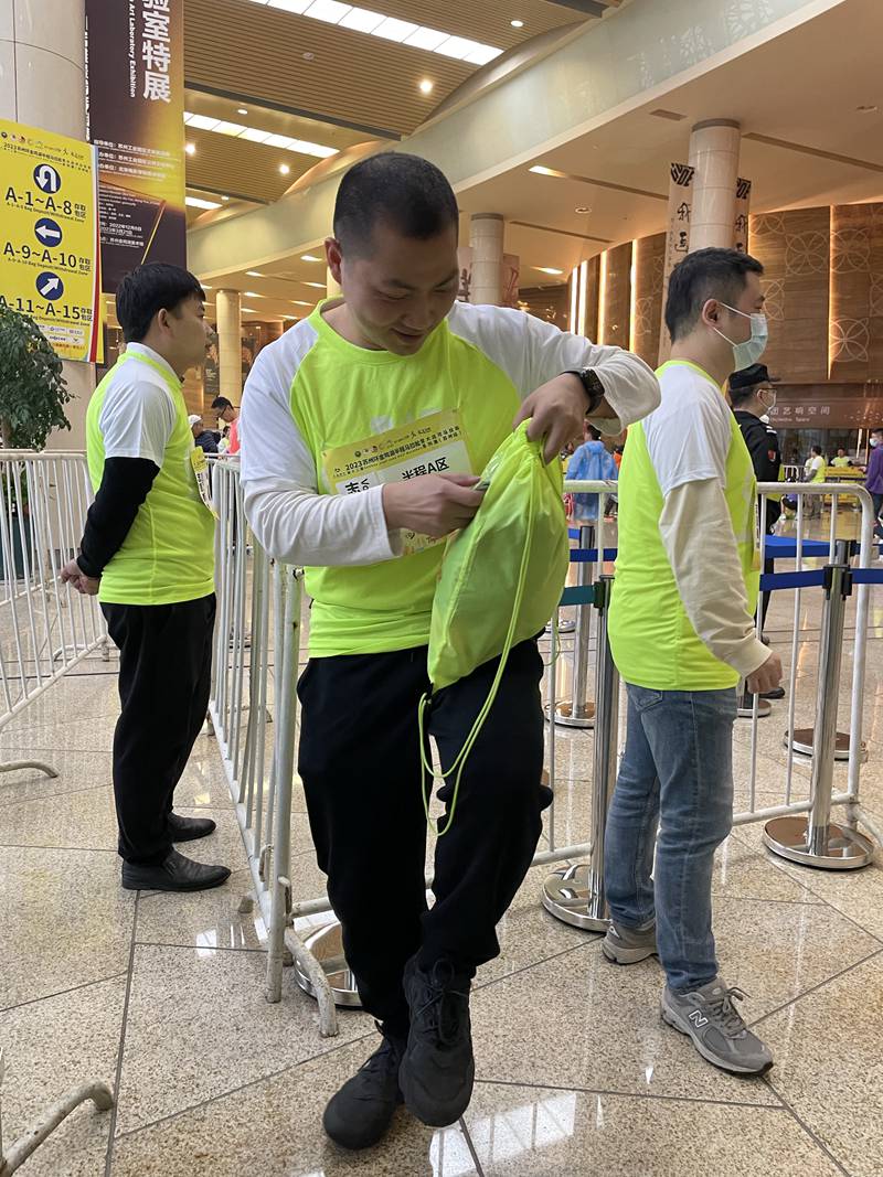 8時30分,隨著比賽開賽,存取包點位的志愿者開始了整理包裹,按照序號,分類排放,以便后續取包工作的順利進行。