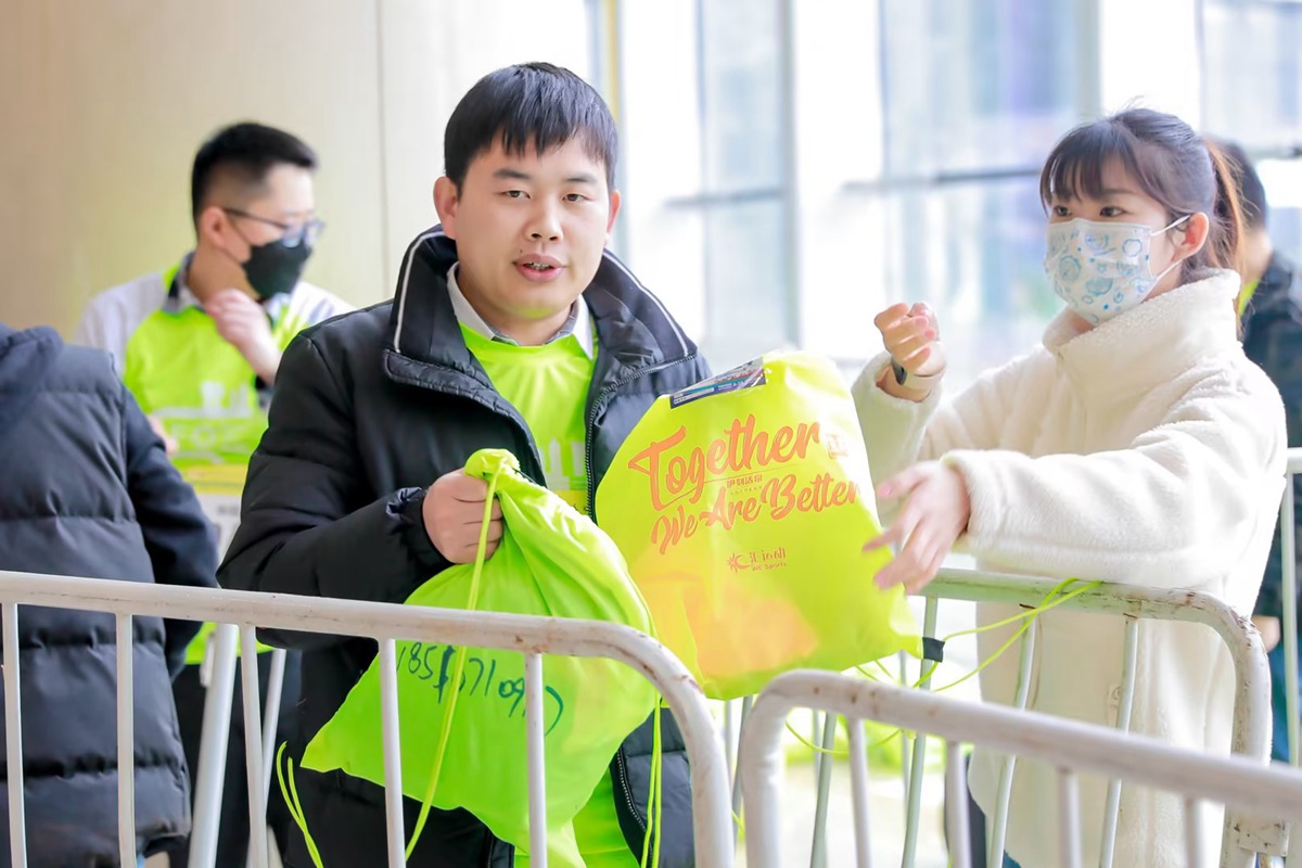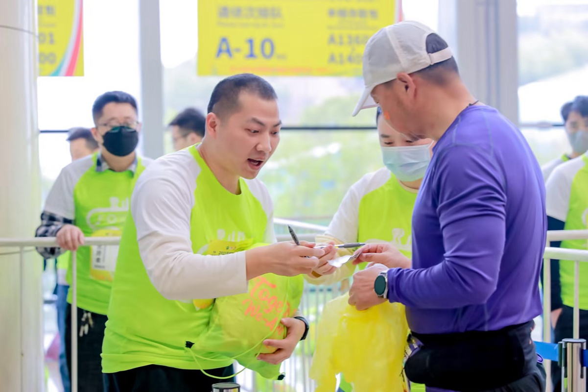 9時40分,第一位完賽選手已經到達點位領取自己的包裹,每一位選手的完賽,都引起現場的掌聲,大家都發自內心為選手喝彩,參賽選手也紛紛對志愿者報以感謝。