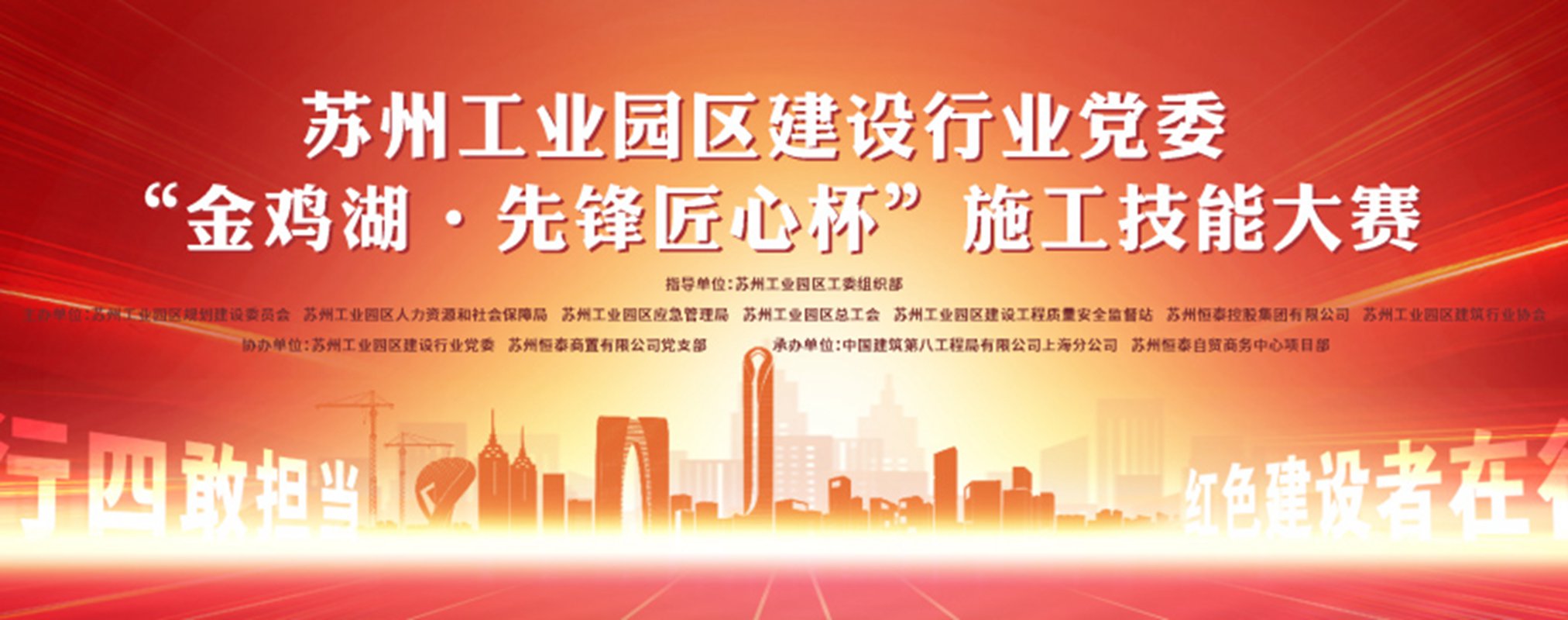 蘇州建筑工程集團有限公司代表隊以“雄鷹展翅飛、奮勇爭第一”為口號,大力弘揚勞模精神、勞動精神、工匠精神,公司各項目部以此為契機,通過前期掀起轟轟烈烈的大練兵,開展崗位練兵、技術培訓、技能比武等活動,大力提升施工人員從業素質,為項目建設實現高質量發展提供紅色人才保障。