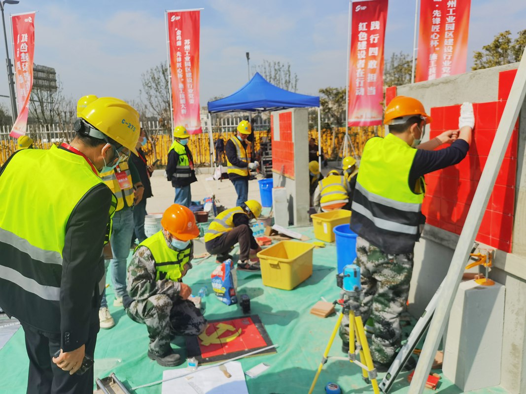 3月10日上午,由蘇州工業園區建設行業黨委主辦的“金雞湖?先鋒匠心杯”施工技能大賽正式啟動,本屆大賽設置安全生產技能、防水鋪貼、花樣砌筑、瓷磚鑲貼4個施工技能比賽項目,同時穿插黨史知識競賽,蘇州建筑工程集團有限公司首次組隊參賽,參與花樣砌筑、瓷磚鑲貼兩個項目的爭奪。